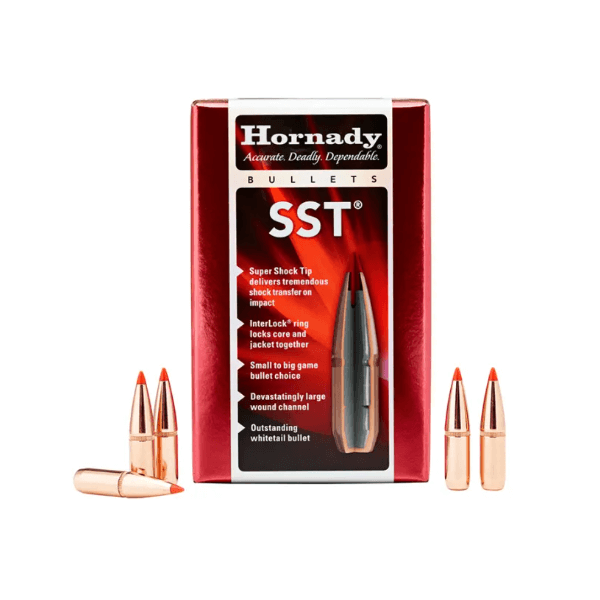 The Hornady® SST® (Super Shock Tip) is designed to deliver tremendous shock on impact while expanding quickly and reliably, particularly at higher velocities.